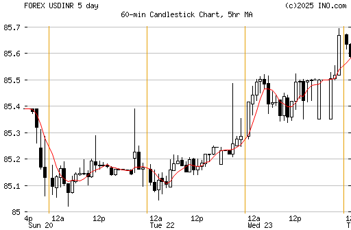 USDINR 5 Day's 60 Minute's Candlestick Chart |